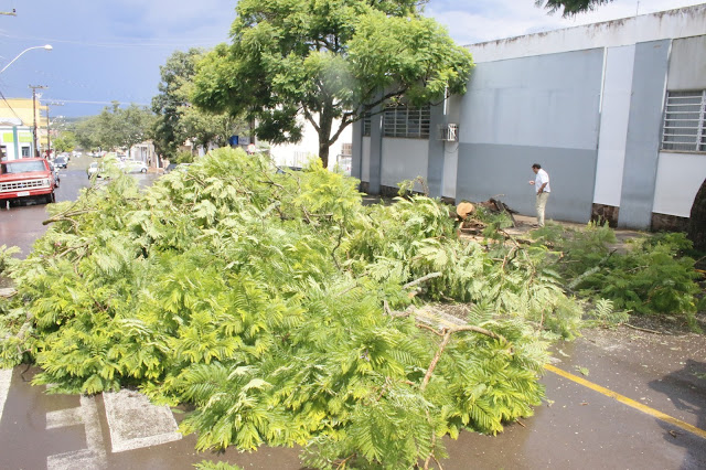 Na Rua Benjamin Constant, caíram duas árvores. Uma em frente a tele-entrega Ligeirinha, que também atingiu a rede elétrica e algumas motos, e outra maior localizada na calçada do Banco do Brasil, que interrompeu o trânsito.