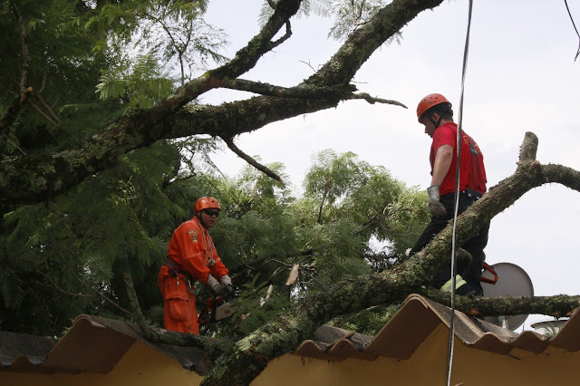 Já na Rua Ramiro Barcelos, uma árvore caiu sobre uma residência. Os Bombeiros foram acionados para prestar auxílio e remover a parte da árvore que atingiu a casa.